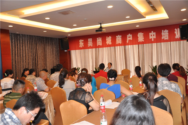 為確保東吳尚城7月中旬順利開業(yè),6月3日起,開發(fā)公司組織開展了入駐商戶集中培訓(xùn)活動,40余家簽約商戶參加培訓(xùn)。在當(dāng)天上午的培訓(xùn)中,開發(fā)公司相關(guān)部門負(fù)責(zé)人向商戶介紹了工程進(jìn)展、入場裝修注意事項以及物業(yè)管理等方面的事宜,并詳細(xì)解答了商戶提出的問題。