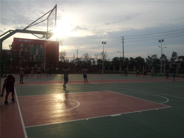 經(jīng)過一個多月的緊張施工,園區(qū)公舍新建設(shè)的兩座標(biāo)準(zhǔn)籃球場已于近日投入使用。