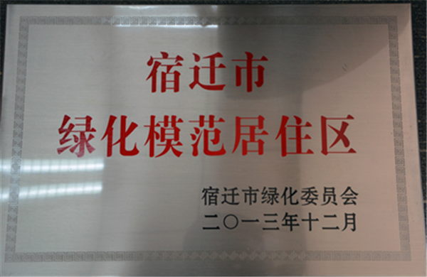 近日,園區(qū)公舍被市綠化委員會(huì)授予“宿遷市綠化模范居住區(qū)”稱號。
