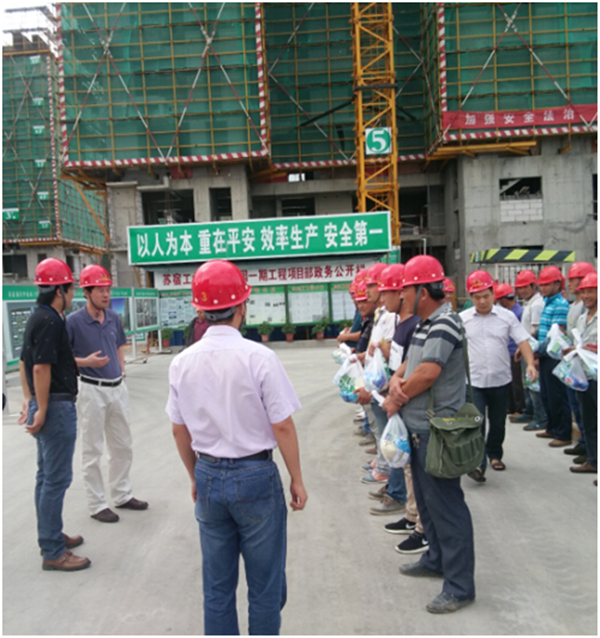 周原現(xiàn)場(chǎng)向施工人員發(fā)放了慰問(wèn)品,并要求施工單位認(rèn)真做好防暑降溫工作,合理安排作息時(shí)間,確?,F(xiàn)場(chǎng)安全文明施工。