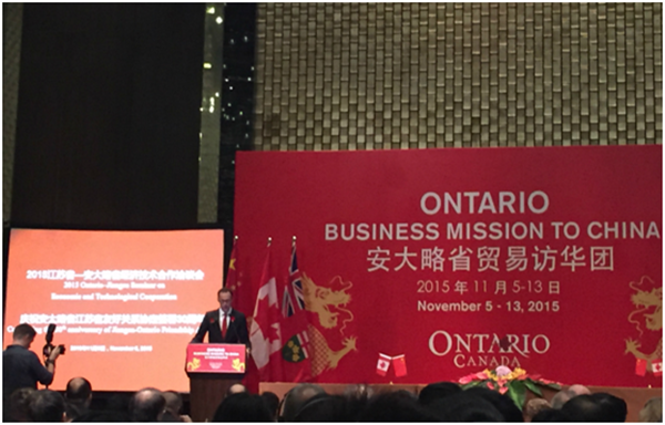 11月6日,JSSD招商團(tuán)隊代表園區(qū)應(yīng)邀赴寧參加2015江蘇省—安大略省經(jīng)濟(jì)技術(shù)合作洽談會。江蘇省和(加拿大)安大略省兩省政府代表,企業(yè)、協(xié)會、高校代表共300人參加洽談會。