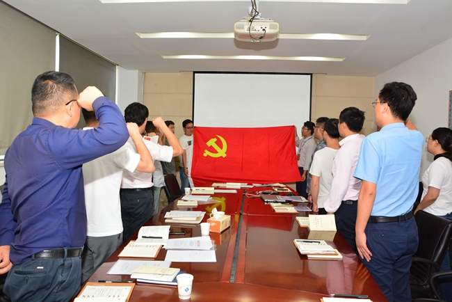 緊接著,開展“四重”活動。活動前公司行政人事部專門從園區(qū)檔案室調取每一名黨員入黨志愿書,將內容拍好發(fā)到每人,重溫入黨時的難忘經(jīng)歷。在劉建華書記的帶領下,右拳高擎,神情莊重,面對鮮紅的黨旗鄭重宣誓,抒發(fā)對黨的忠誠,踐行黨的宗旨,維護黨的形象和愛黨愛國情懷。