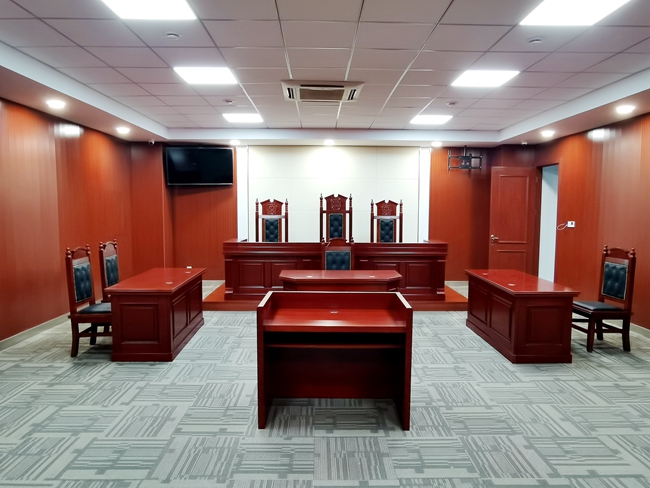 近年來園區(qū)勞資糾紛案件不斷增多,為提高化解效能,進(jìn)一步優(yōu)化法治營(yíng)商環(huán)境,經(jīng)管委會(huì)批準(zhǔn),將園區(qū)便民服務(wù)中心一樓培訓(xùn)室改造成“勞動(dòng)爭(zhēng)議仲裁庭”。項(xiàng)目設(shè)置審判席、仲裁席及旁聽席等功能性區(qū)域。