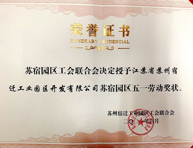 近日,開(kāi)發(fā)公司榮獲“蘇宿園區(qū)五一勞動(dòng)獎(jiǎng)狀”,系園區(qū)首次表彰的五一勞動(dòng)獎(jiǎng)項(xiàng)。