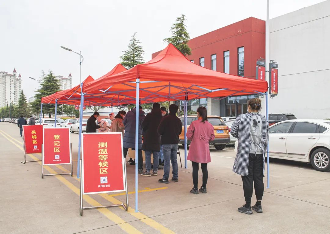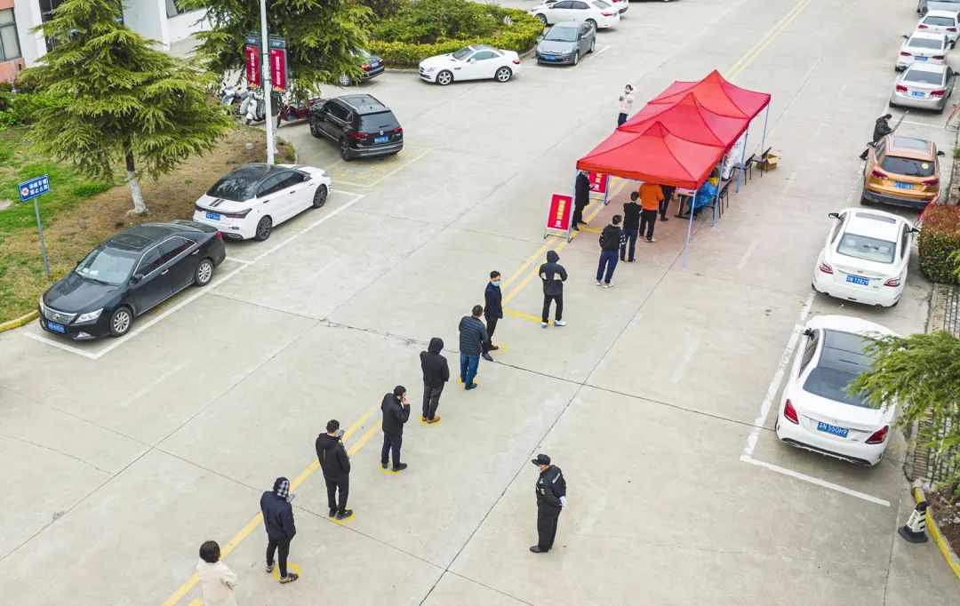 圖為3月21日,工業(yè)坊廠區(qū)各企業(yè)開展第二輪核酸抽檢工作,對(duì)保潔、保安、食堂工作人員做到每日一檢,工業(yè)坊各企業(yè)每天抽檢總?cè)藬?shù)的20%,做到一周內(nèi)全員應(yīng)檢盡檢。