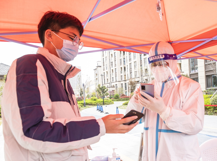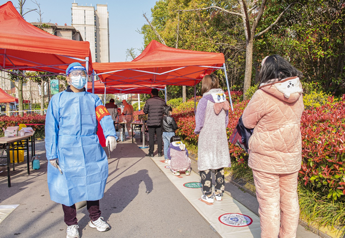 沈揚(yáng)是園區(qū)城發(fā)公司財(cái)務(wù)審計(jì)部總經(jīng)理,3月29日23時(shí),當(dāng)孩子們已進(jìn)入夢(mèng)鄉(xiāng),他和在蘇宿鄰里公司財(cái)務(wù)部工作的妻子施桂俠先后接到疫情防控緊急集合電話,夫妻倆迅速?zèng)Q定將三個(gè)孩子交給70多歲患有冠心病、裝著起搏器的父親和雙腿裝著人工膝蓋的母親來(lái)照料,義無(wú)反顧地投入到疫情防控一線。沈揚(yáng)是包保小區(qū)的點(diǎn)位長(zhǎng),連夜統(tǒng)計(jì)整理包保點(diǎn)居住人數(shù)、設(shè)計(jì)表格、領(lǐng)取防疫物資、布置點(diǎn)位人員,忙完這些,天已放亮,他又接著開(kāi)展核酸檢測(cè)工作。檢測(cè)完成后,他又忙著統(tǒng)計(jì)分析數(shù)據(jù),優(yōu)化工作方案,申領(lǐng)第二天核酸檢測(cè)物資,又到夜里2點(diǎn)多,他稍瞇了會(huì),四點(diǎn)多又趕到點(diǎn)位進(jìn)行新一輪核酸檢測(cè)布置。妻子是登記員,雖然在同一個(gè)小區(qū),只有吃飯時(shí)能見(jiàn)上一面,相互交流一下家里的情況。已四五天沒(méi)回家的他們,只能空閑時(shí)通過(guò)視頻安撫一下兩個(gè)幼兒,鼓勵(lì)和督促一下即將中考的大女兒。