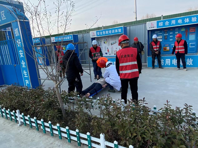 為消除事故隱患,筑牢施工現(xiàn)場的安全防線,提升施工現(xiàn)場安全生產(chǎn)及事故應(yīng)急響應(yīng)及處置能力,2月16日下午,青年公寓一期項目在工地辦公區(qū)北側(cè)開展了2023年度高處墜落及觸電傷害應(yīng)急演練,項目各方共計約40余人參與了本次演練。
