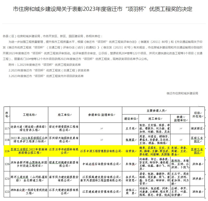 近日,園區(qū)口袋公園項(xiàng)目——蘇宿工業(yè)園區(qū)2022年青海湖西路微公園工程榮獲2023年度宿遷市“項(xiàng)羽杯”優(yōu)質(zhì)工程獎。