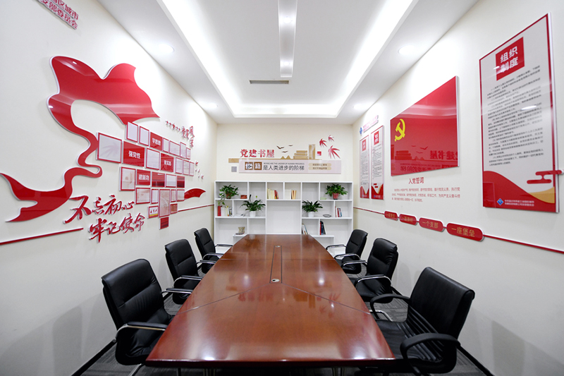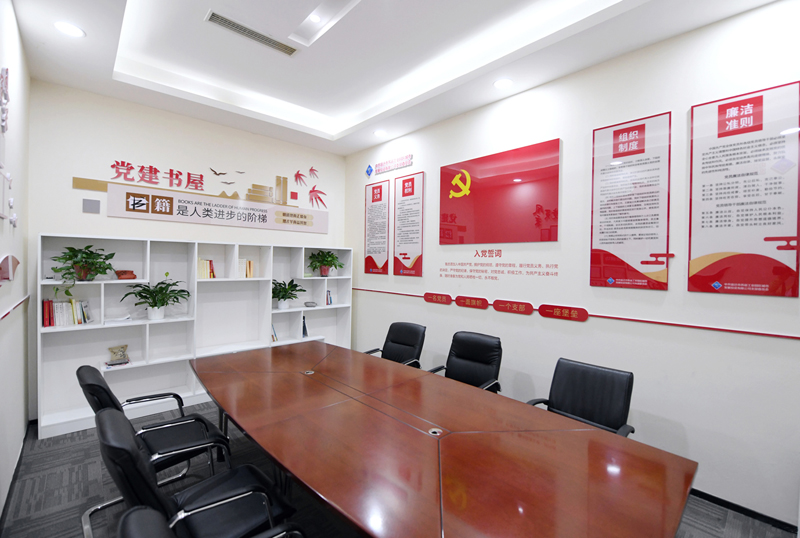 城發(fā)公司黨支部以“規(guī)范、節(jié)儉、實用”為目標,對原會議室進行了科學設計和規(guī)劃,滿足公司黨員職工學習、會議需要,并配置書架存放多種類黨建書籍、管理書籍以及日常學習活動資料,全方位為黨建工作開展活動創(chuàng)造條件和溫馨的環(huán)境,實現了“一室多用”的效果。