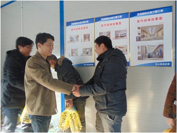 近日,園區(qū)開(kāi)發(fā)公司黨支部開(kāi)展春節(jié)前夕走訪慰問(wèn)活動(dòng),對(duì)公司在建工程工地的10余名生活困難工人進(jìn)行了慰問(wèn),為他們送上慰問(wèn)品,帶去節(jié)日的問(wèn)候。公司黨支部書(shū)記、副總裁劉建華參加活動(dòng)。
