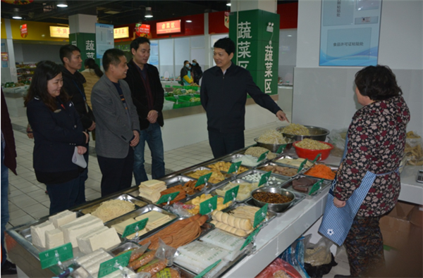 戈亮一行現(xiàn)場聽取了菜場負(fù)責(zé)人開業(yè)準(zhǔn)備工作情況匯報(bào),實(shí)地察看了生鮮菜場規(guī)劃布局、開業(yè)方案、食品安全臺賬、食品安全檢測室設(shè)備,與各經(jīng)營戶親切交談。
