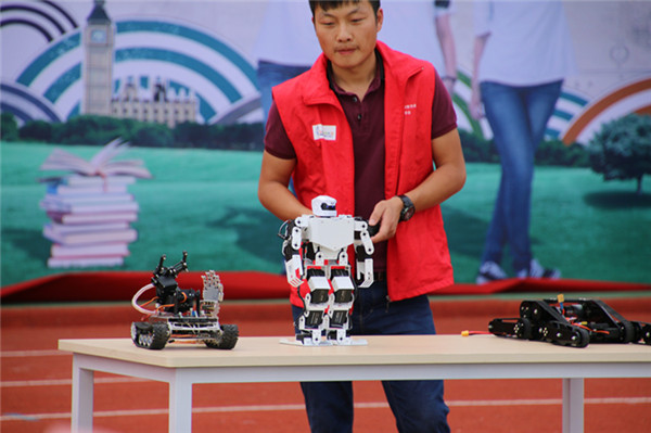表演中,兩臺(tái)多軸飛機(jī)在場(chǎng)地作繞場(chǎng)及8字飛行,在飛行4分鐘后,隨著背景的高潮音樂(lè)響起,在空中打開(kāi)了橫幅——“共創(chuàng)文明社區(qū),締造幸福家園?!彪S后,無(wú)論是機(jī)器人的介紹演示、固定翼無(wú)人機(jī)的拉煙表演還是直升機(jī)表演,又或是像真機(jī)空中格斗飛行,都讓同學(xué)們?cè)诨?dòng)和操作中充分感受到了科技的飛速發(fā)展,拓展了視野,更對(duì)航空模型制作產(chǎn)生了濃厚的興趣。