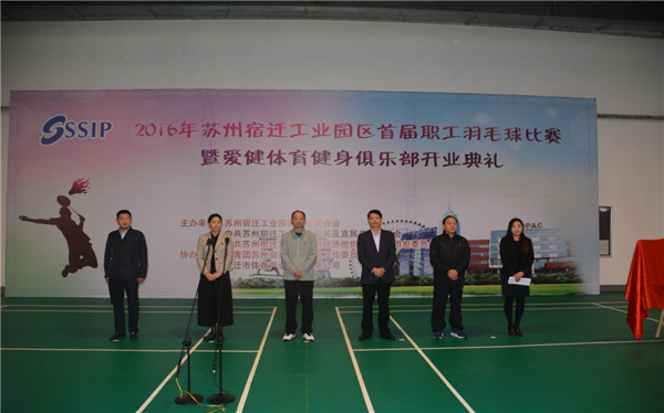 10月22日,2016年度園區(qū)首屆職工羽毛球比賽暨園區(qū)愛健體育健身俱樂部開業(yè)典禮正式舉行。市體育局局長(zhǎng)錢輝、副局長(zhǎng)王艷,園區(qū)黨工委委員、管委會(huì)副主任戈亮,市體育產(chǎn)業(yè)發(fā)展有限公司總經(jīng)理趙九龍等領(lǐng)導(dǎo)參加了開業(yè)典禮。